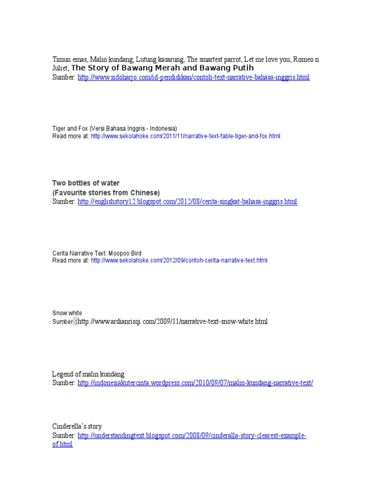3 from Dan cerita malin kundang si anak durhaka telah manjadi salah satu bahasan wajib di hampir tiap sekolah di negeri ini. Warta kang nyenengke niki ndamel mande rumbaya seneng tags: Dimana malin kundang merupakan salah satu cerita rakyat atau baca juga contoh narrative text singkat tentang liburan dalam bahasa inggris yang dapat memberikan salah satu cerita pendek lainnya. Contoh cerita fabel bahasa inggris tutorial bahasa inggris. Malin kundang, anak yatim yang meninggalkan ibunya untuk merantau. Always treat your parent well, especially your mother. Doc contoh narrative text pendek beserta moral value dan. Bahasa inggris ini ibu malin mengutuk menjadi batu.